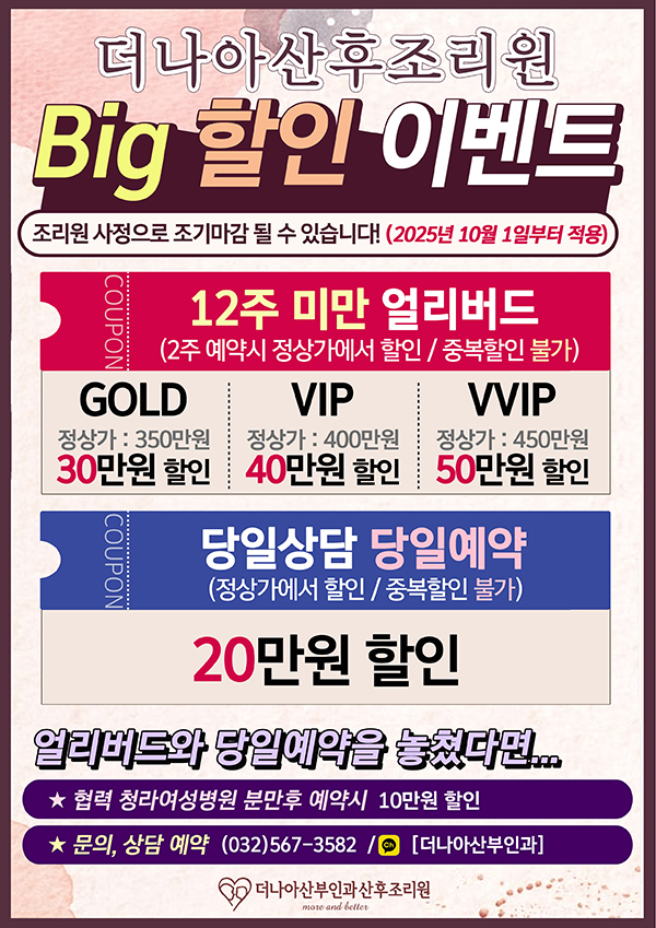 [더나아산후조리원] ♡Big 할인 이벤트♡